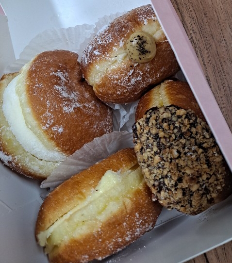 요즘 집에서 베이킹에 푹 빠져있는데 이렇게 맛있는게 집근처엔 없으니 만들어볼까 싶었지만 기름에 튀기는게 엄청 번거로워 보여서 패스... 아마 이건 브리오슈 도넛인것 같다. 집에서 반죽해서 튀긴 다음 안에 슈크림같은 필링을 넣어주면 되는데 집에서 만들기엔 대단한 정성이 들어가야 할듯 하다.