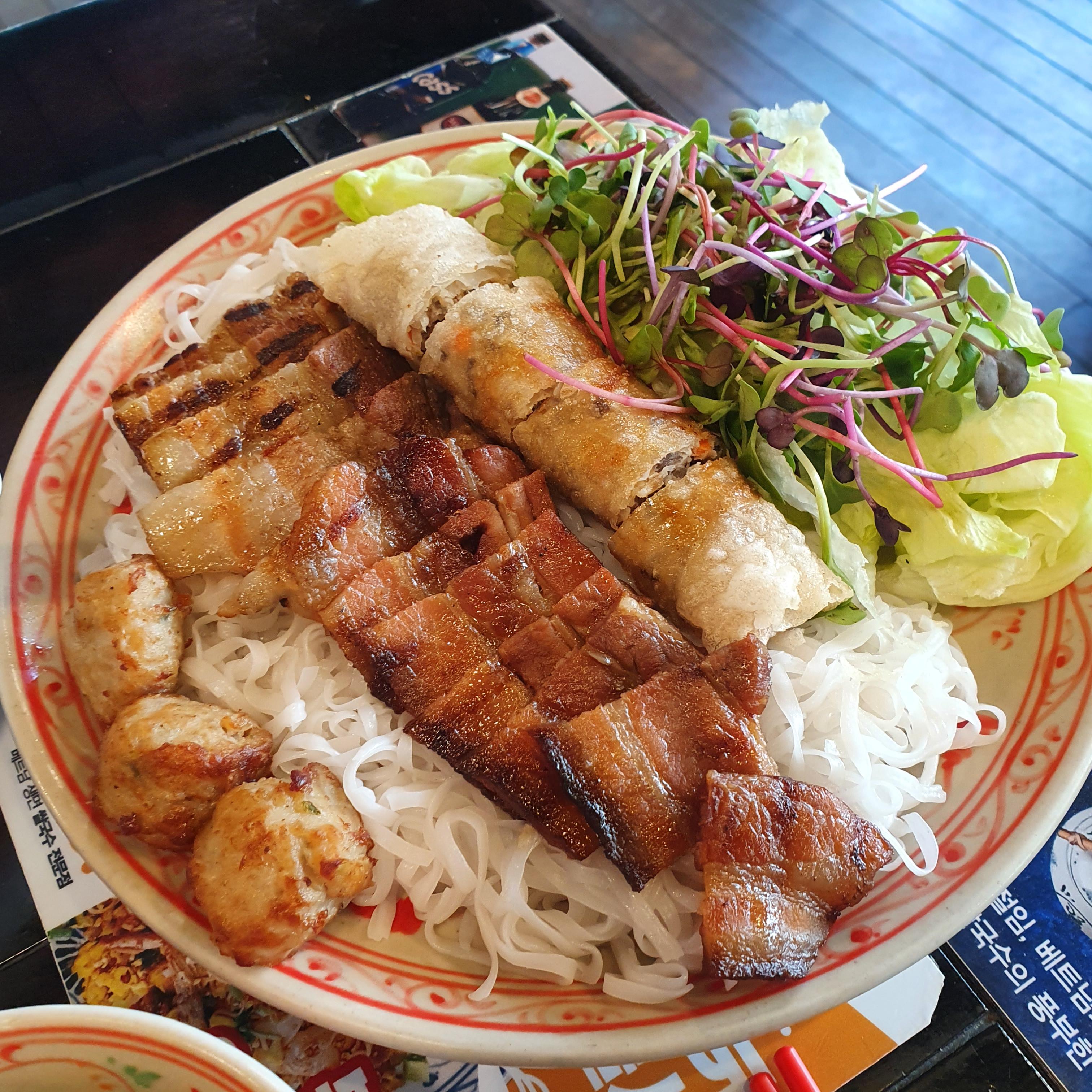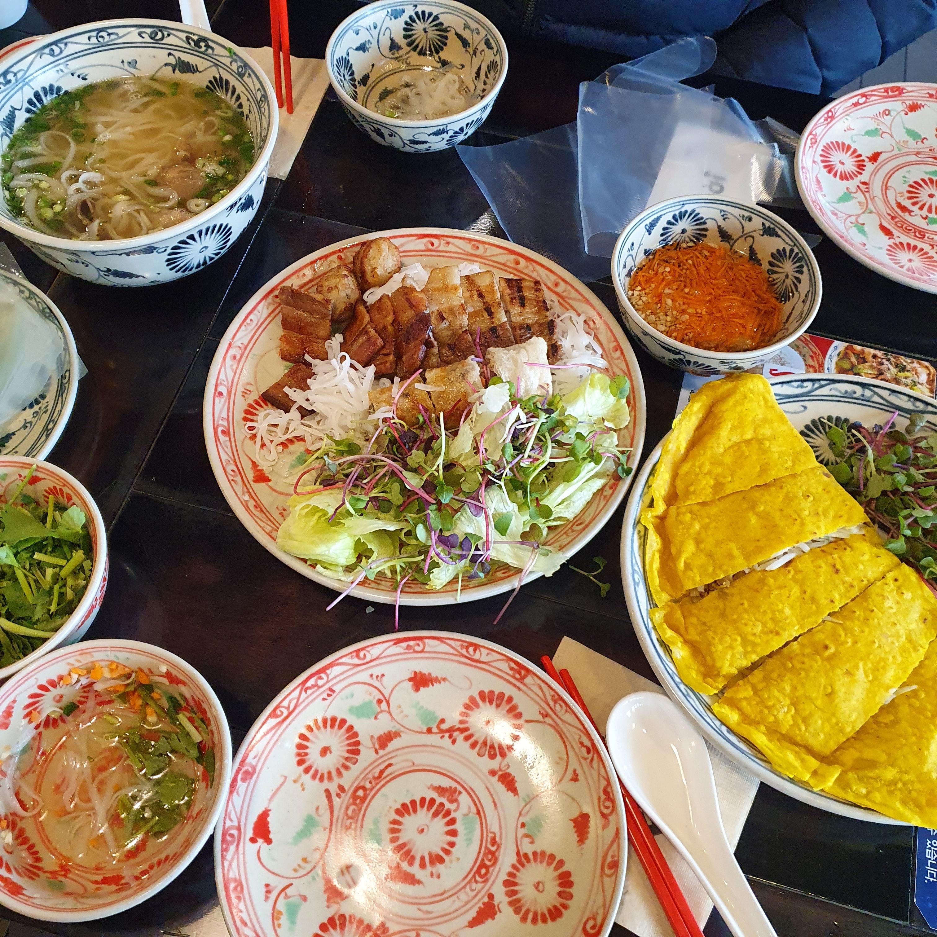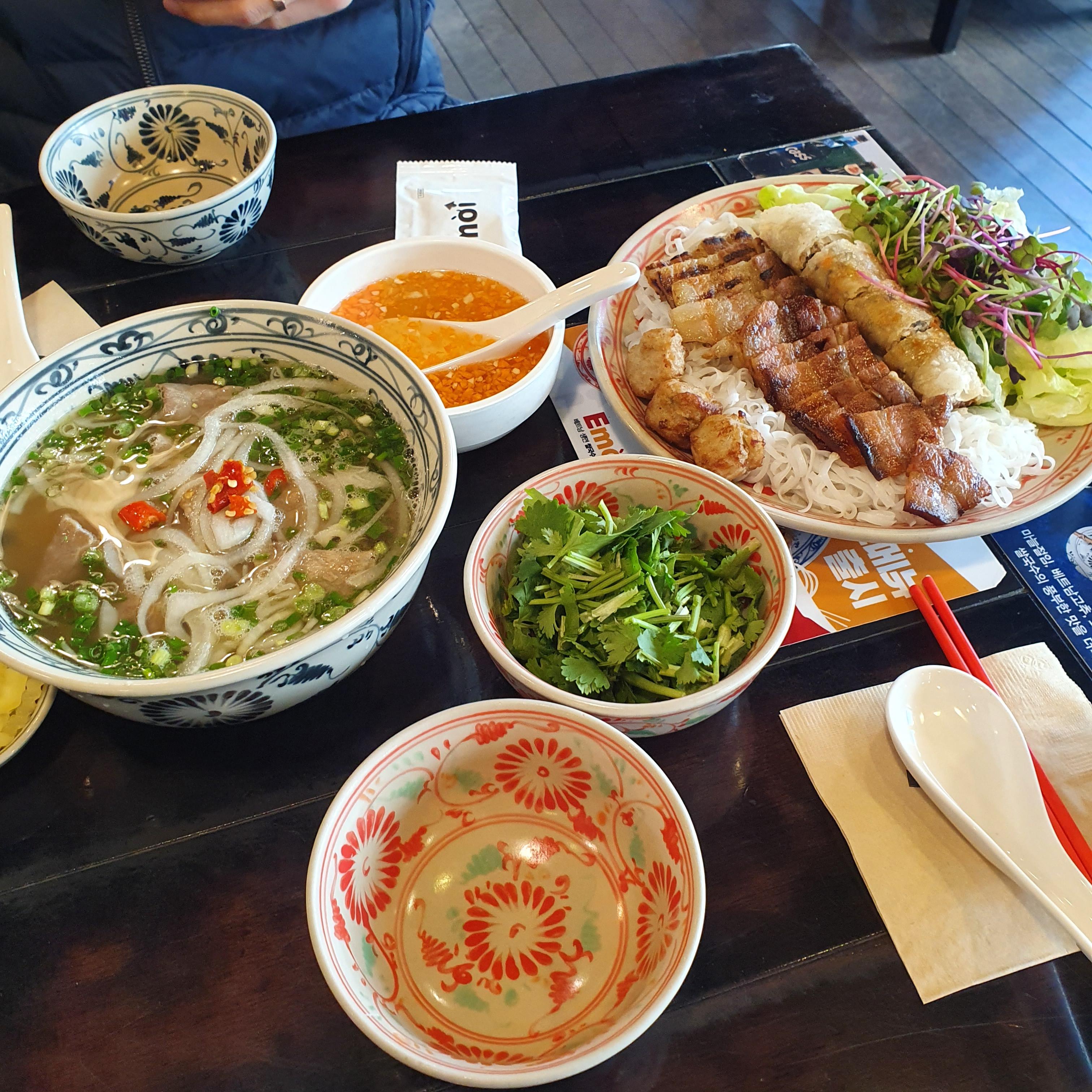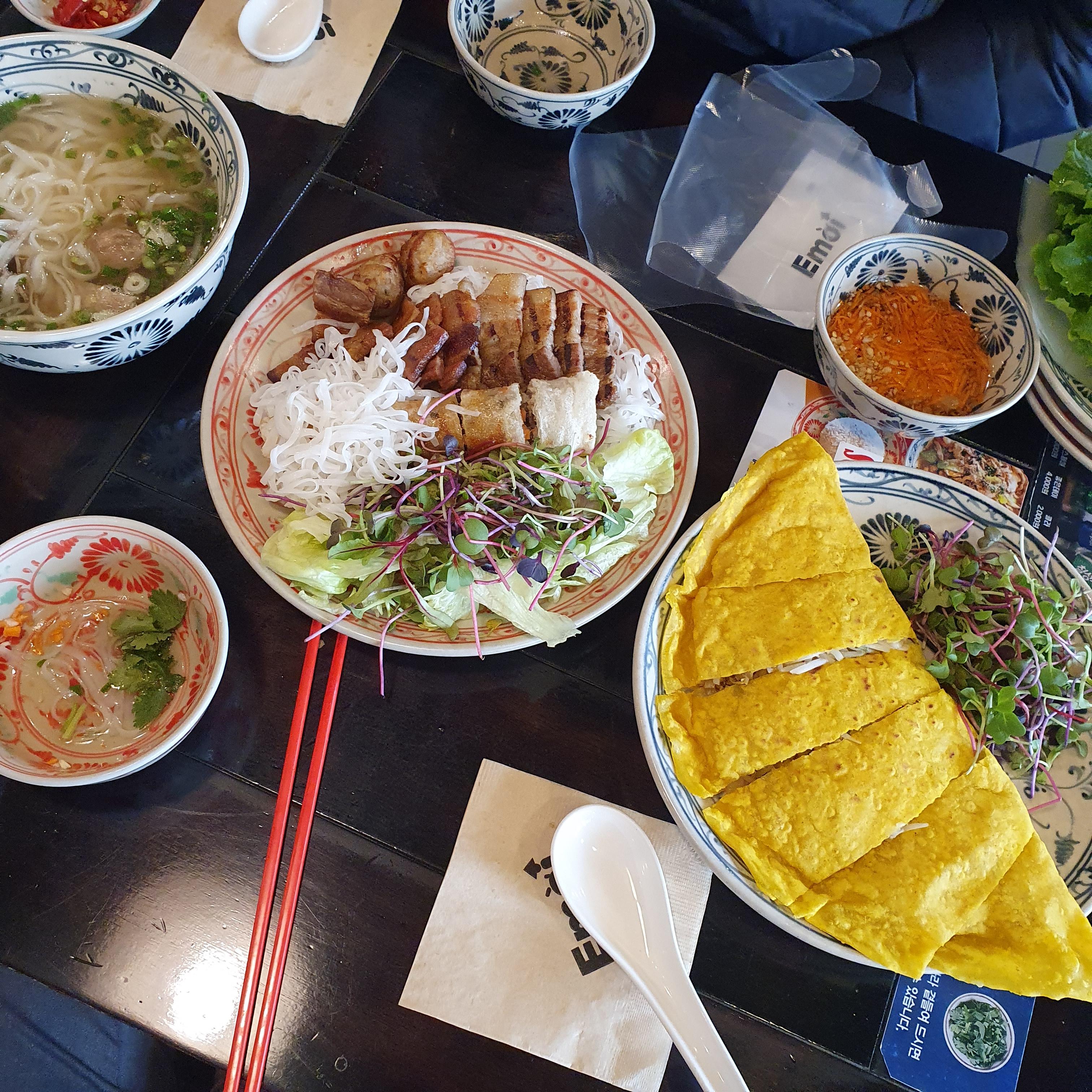 마침 오빠랑 시간이 맞아서 삼산동에 위치한 에머이에 다녀왔어요. 저희는 쌀국수, 분짜, 반쎄오를 주문했어요. 둘이서 조금 많다 싶었는데 정말 베트남 요리가 너무 땡겨서 주체가 안되더라고요 하하하.
