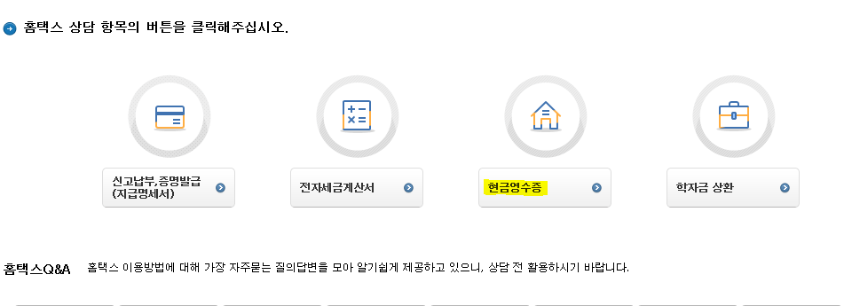 현금영수증 관련 문의니 현금영수증 을 눌러주시면 됩니다.