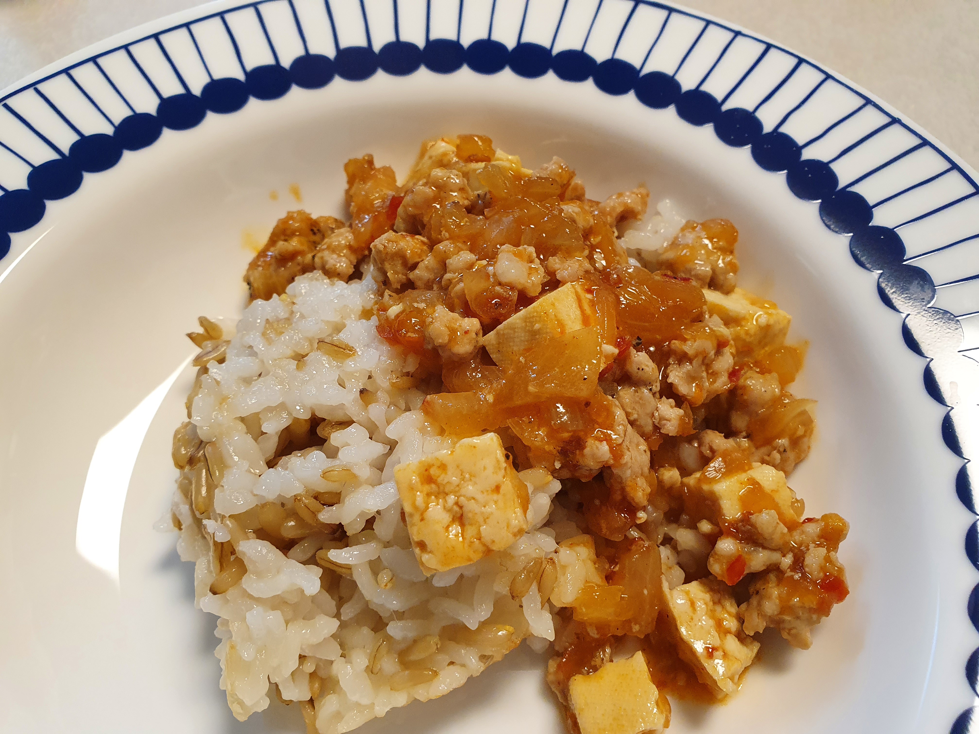 그렇게 하면 맛있는 마파두부 덮밥이 완성된답니다! 귀리를 넣고 지은 밥에 마파두부를 올려주니 먹음직스러운 한끼가 완성되었어요. 정말 간편하게 만들기 쉬운 저녁밥상이었어요.